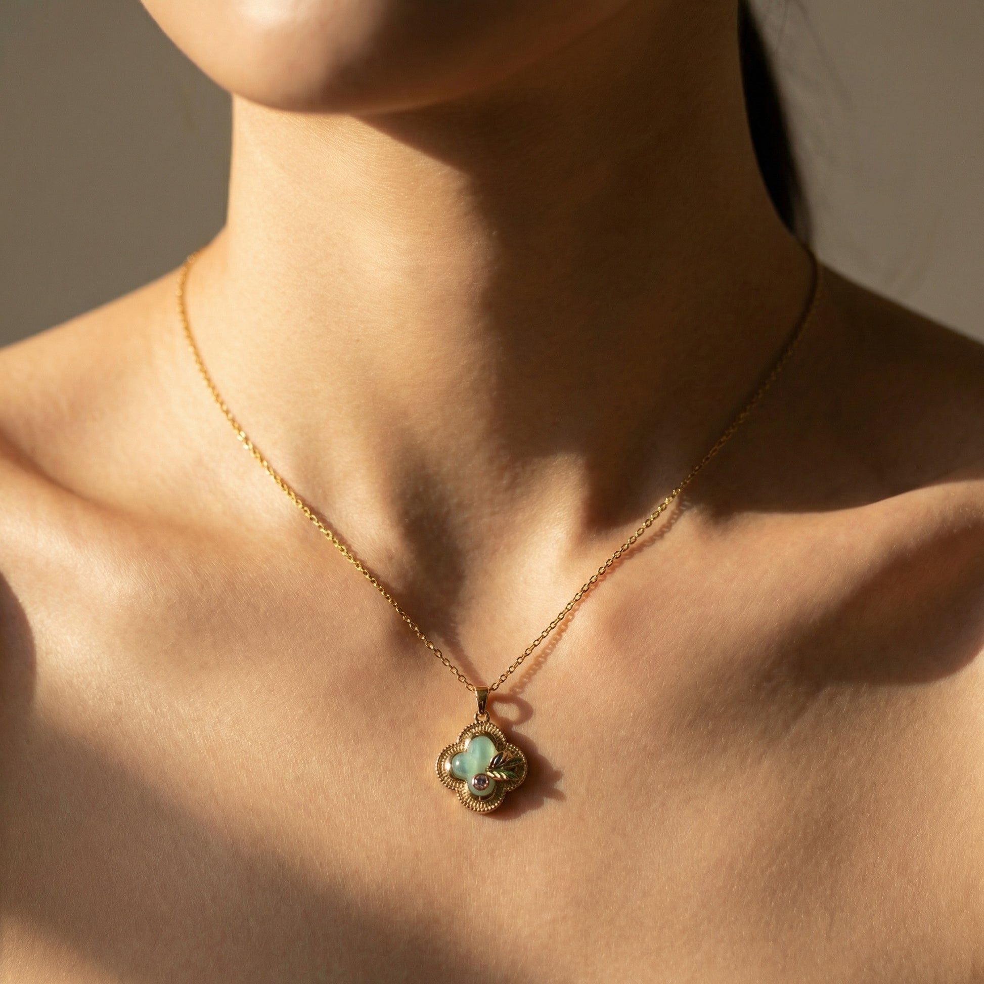 Add a soft, elegant touch to your look with this Korean Floral Clover Pendant Necklace. Designed with a delicate clover-shaped pendant featuring subtle floral detailing, it brings a refined charm to everyday and occasion wear.