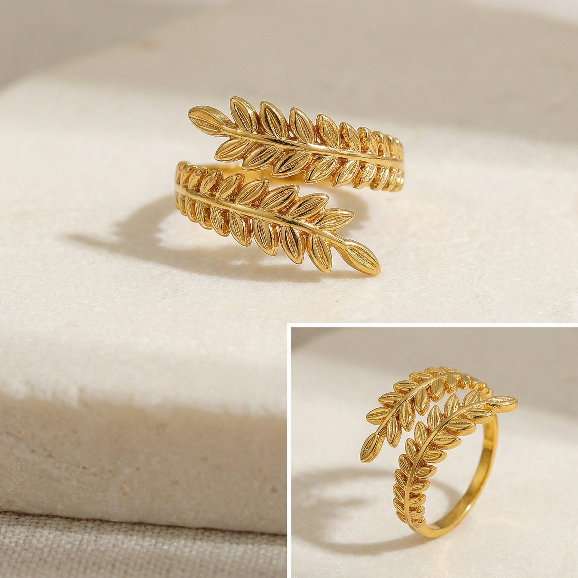 Bring a fresh, nature-inspired touch to your style with this 18K gold plated tropical leaf open ring. Made from durable 304 stainless steel with ion plating (IP), this stone-free design features detailed tropical leaf accents for a soft yet statement look.